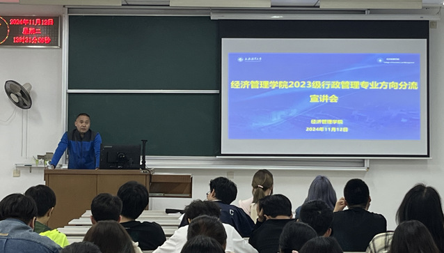 2024年11月12日下午,yd云顶集团官网在1115教室举办2023级行政管理专业方向分流宣讲会。公共管理系主任孔凡宏教授,方向负责人李强华副教授、李凤月副教授,学院教务办的相关教师和全体2023级行政管理专业学生一同参加会议。